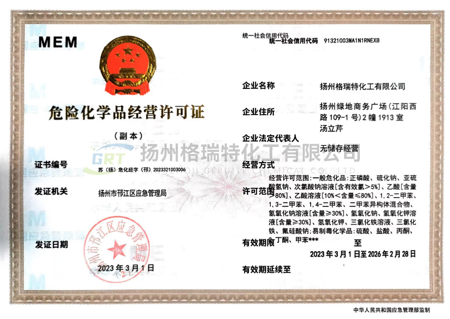 揚州格瑞特化工有限公司生產(chǎn)工廠坐落于江蘇省海安縣胡集工業(yè)園區(qū)和海安精細化工工業(yè)園??偣境闪⒂?999年,是集科、工、貿(mào)為一體的現(xiàn)代化生產(chǎn)型企業(yè)。專業(yè)致力于水處理劑、紡織印染助劑、化纖油劑等產(chǎn)品的科研、開發(fā)、生產(chǎn)和銷售??偣菊嫉孛娣e40000m,建有現(xiàn)代化標準廠房,擁有先進的生產(chǎn)設(shè)備。年產(chǎn)各類水處理劑系列產(chǎn)品12000噸,紡織印染助劑5000噸,產(chǎn)品12個系列40多個品種。總公司注重技術(shù)投入,設(shè)立產(chǎn)品研發(fā)中心和環(huán)保運營中心,聘請了多位專家為公司技術(shù)顧問,并和多個重點院校建立了長期技術(shù)合作開發(fā)關(guān)系,是南通大學、江南大學、南京工業(yè)大學產(chǎn)學研基地。